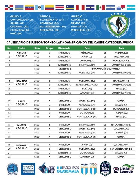 Grupo A: Guatemala A, Aruba, Colombia, Costa Rica, Perú.