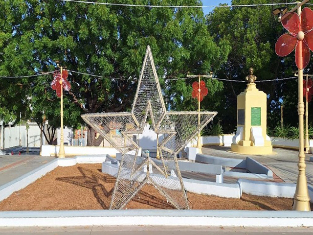 En la Plaza Independencia, en la entrada de Santa Lucía, se restauró completamente el pedestal de la figura femenina, recuperando sus colores originales con una importante participación comunitaria del entorno.