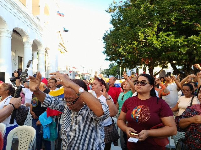 «Nuestros verdaderos misiles son estos: la gente en la calle expresándose en paz. No somos un pueblo guerrerista, pero estamos en pie de lucha para traer de vuelta a nuestro presidente y a la primera dama Cilia Flores», concluyó el alcalde, exhortando a la comunidad internacional y a la sociedad civil a rechazar lo que denominó una «barbarie colonialista» por parte de EE.UU.