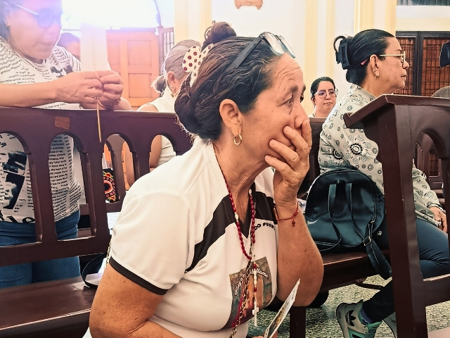 Nieves, con la voz entrecortada y la mirada cargada de lucha, confesó que atraviesa un proceso de depresión tras enfrentar el Alzheimer. “Mi fe es saber que Dios está en todos lados… yo le pido por mi salud y por todos los enfermos del mundo”, dijo, aferrándose a una vela como quien se aferra a la vida.